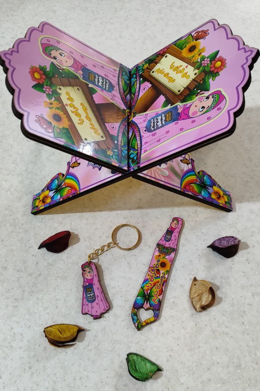 رحل کودک دخترانه با جاکلیدی و نشاگر قرآن دفترچه پیکسل کپی