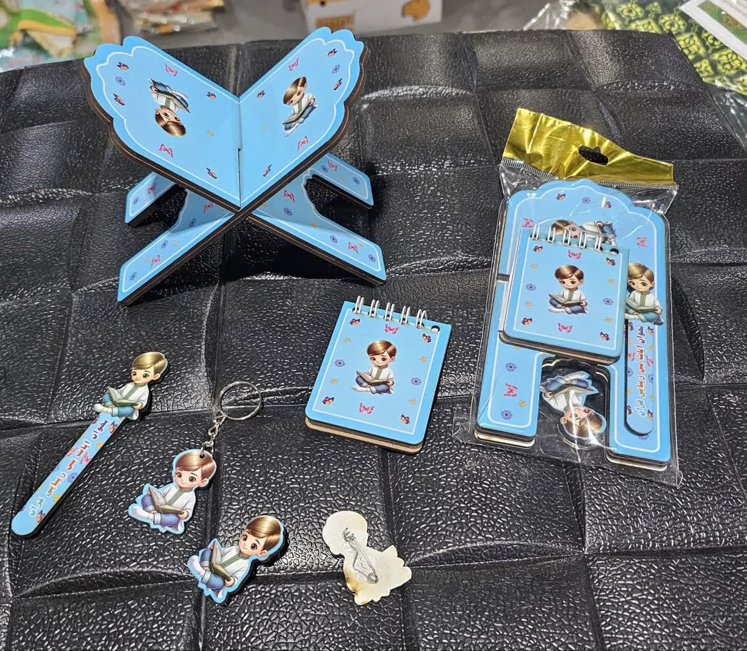 رحل کودک پسرانه با جاکلیدی و نشاگر قرآن دفترچه پیکسل