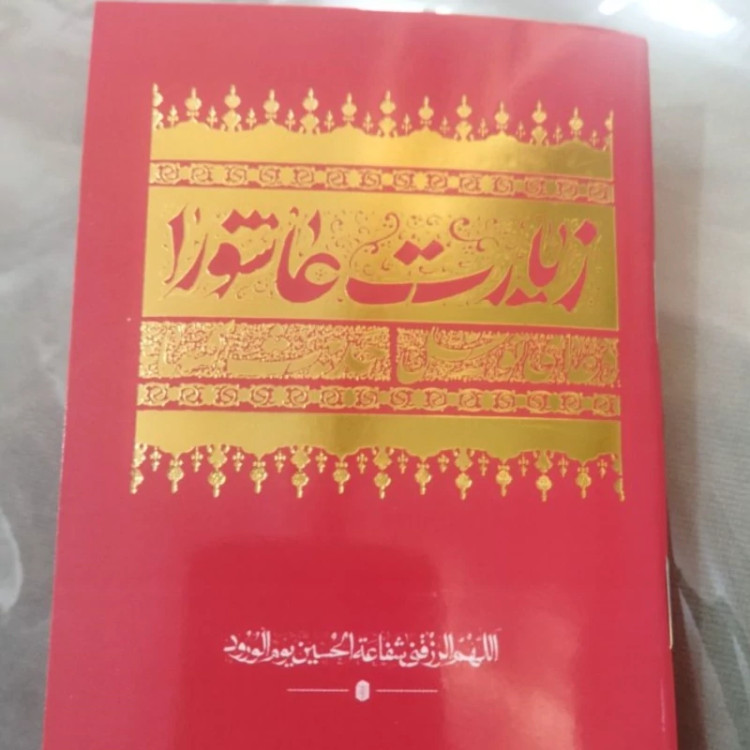 زیارت عاشورا دعای توسل وحدیث کسا نیم جیبی جلدقرمز طلایی تعداد ص48 نشر شش گوشه حروف ناخوانا قرمز رنگ درشت خ