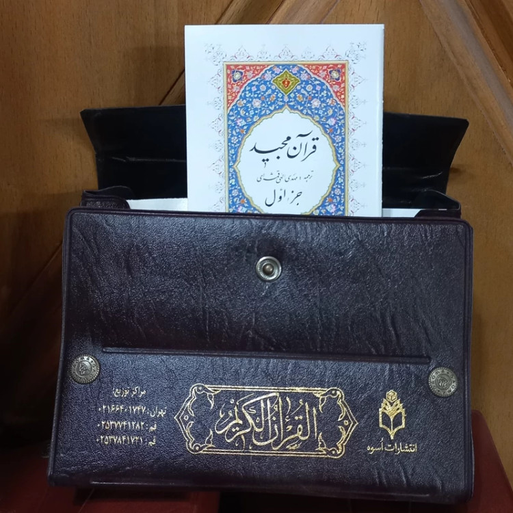 قرآن کریم ۳۰ پاره گالینگور طلاکوب دو رنگ ترجمه استاد مهدی الهی قمشه ای زیبا و نفیس چاپ اسوه