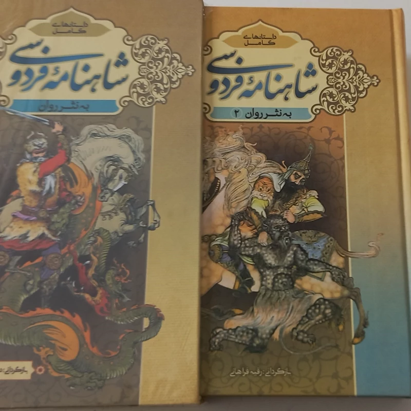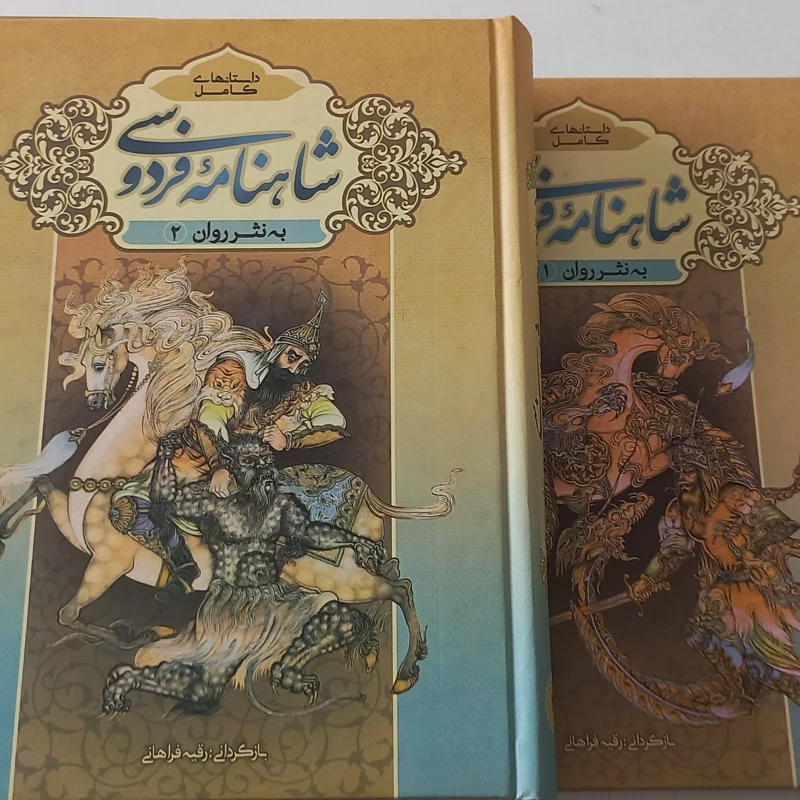 کتاب شاهنامه فردوسی به نثر روان دوجلدی قابدار بزرگ و نفیس با تصویر زیبا مناسب برای هدیه دادن