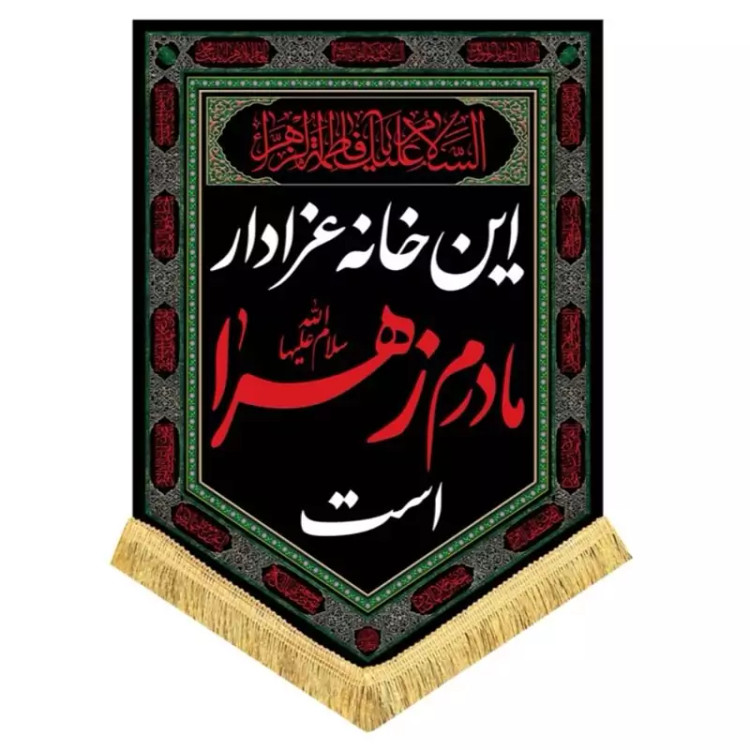 مخمل این خانه عزادار مادرم زهرا (س) است به همراه اسامی چهارده معصوم (ع) و ذکر السلام علیک یا فاطمه الزهرا (س) ، مناسب منازل و هیئات مذهبی که در ابعاد مختلف قابل سفارش است. استفاده شده از پارچه مخمل قابل شستشو با بهترین کیفیت چاپ و پارچه، همراه با دور دوزی و ریشه دوزی می باشد