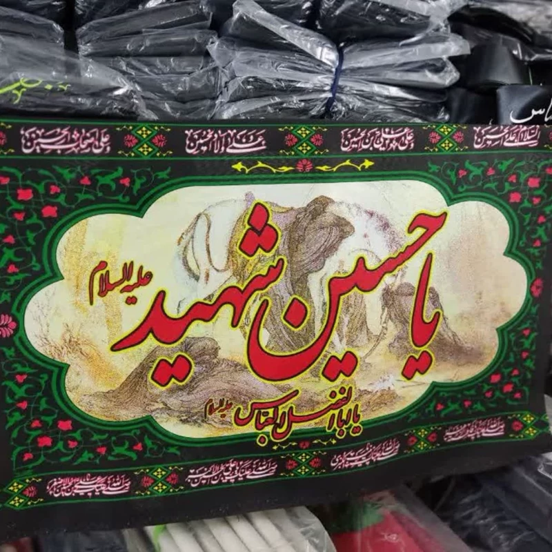 پرچم سردری یا حسین شهید اللهم عجل لولیک الفرج چهار طرف دوخته شده است