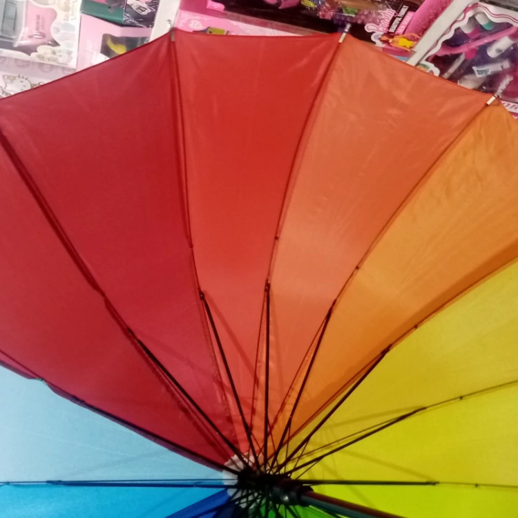 چتر دسته معمولی عصایی تمام شده رنگین کمانی کیفیت عالی با قیمت مناسب برای شما شیک وزیبا و با کیفیت زیر باران باید رفت