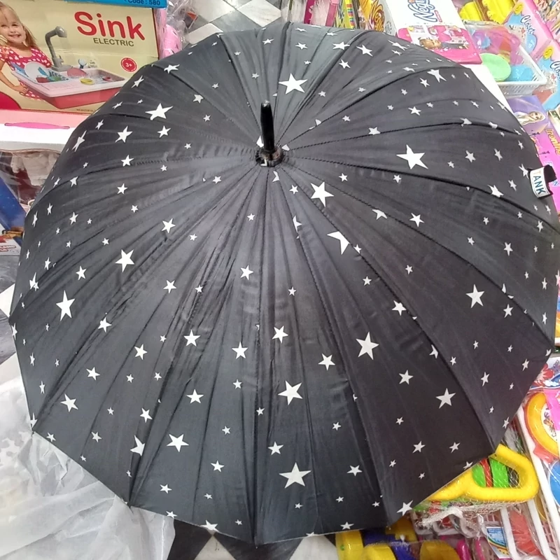 چتر دسته عصایی طرح ستاره باران کیفیت عالی با قیمت مناسب برای شما شیک وزیبا و با کیفیت زیر باران باید رفت