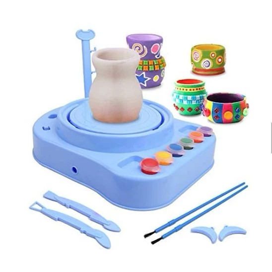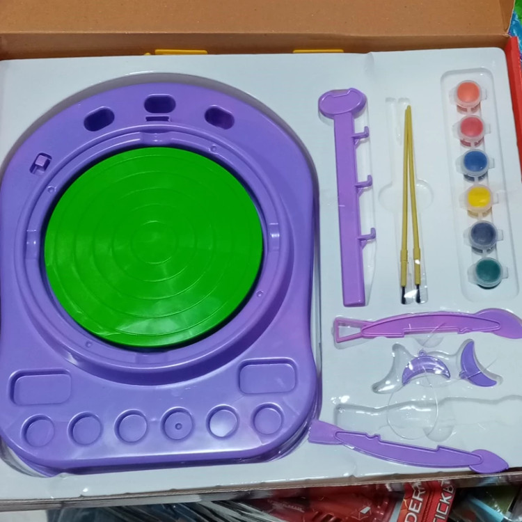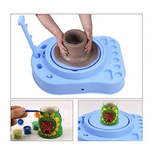 به همراه گل ،چرخ سفال و ابزارهای مختلف