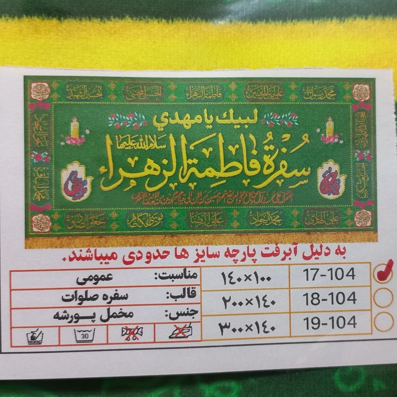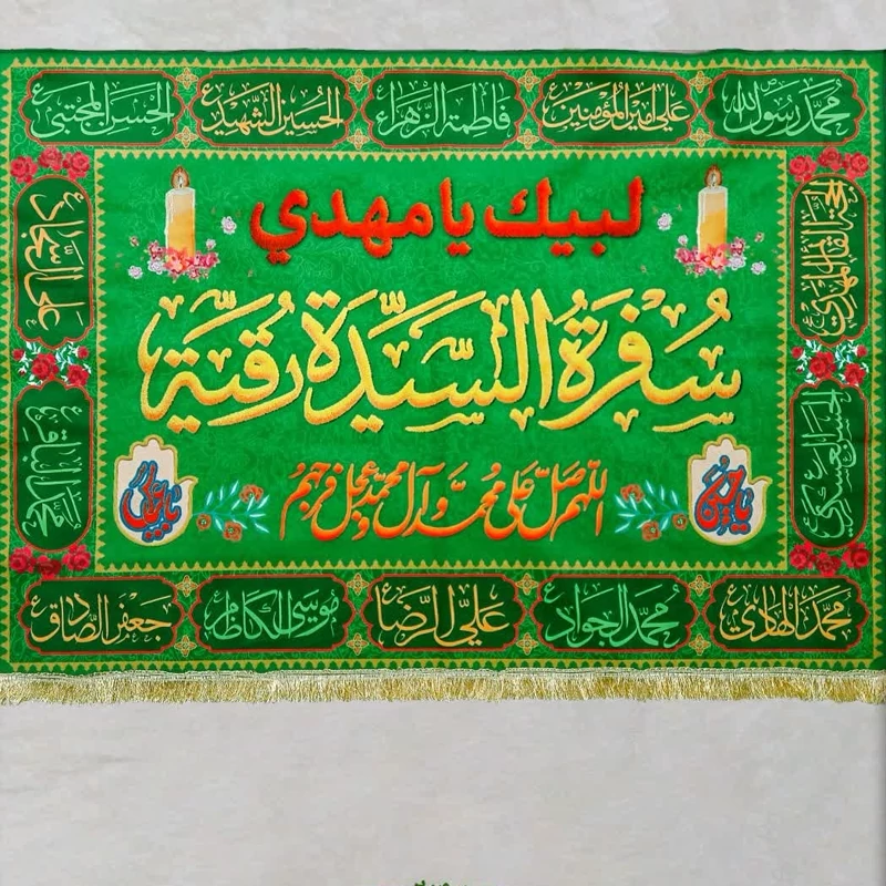 سفره حضرت زهرا سلام الله علیها مخمل100 در 200 چاپ سابلیمیشن ثبت سفارش محصولات فرهنگی چاپی با قیمت مناسب برای شما