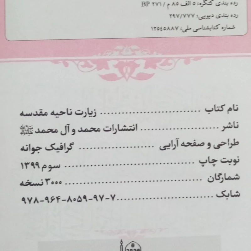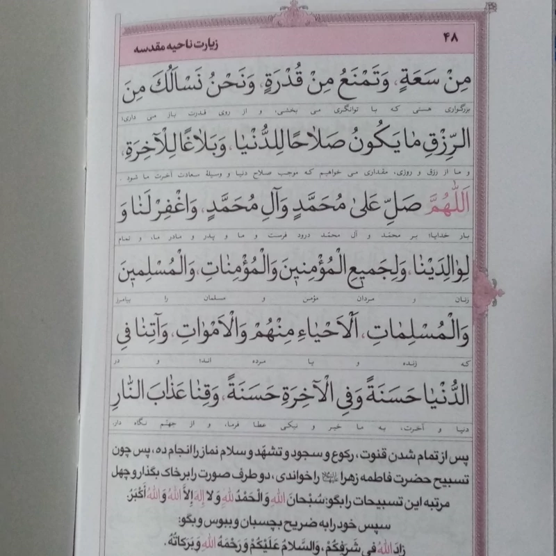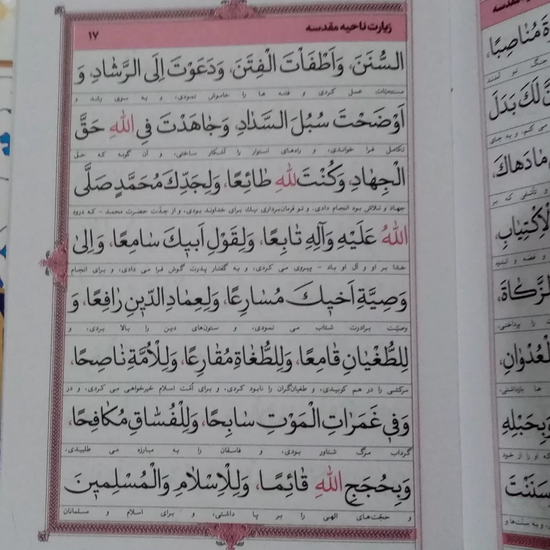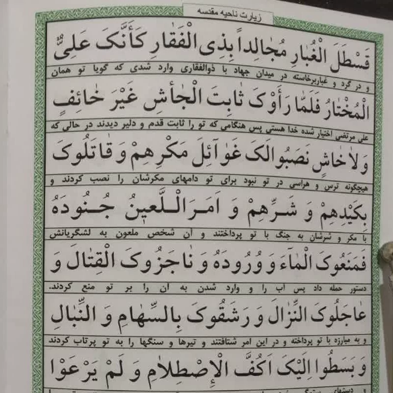 زیارت ناحیه مقدسه بسیار خوش خط و زیبا با ترجمه فارسی روان با علامت وقف