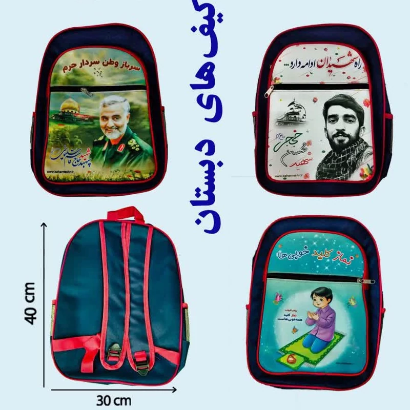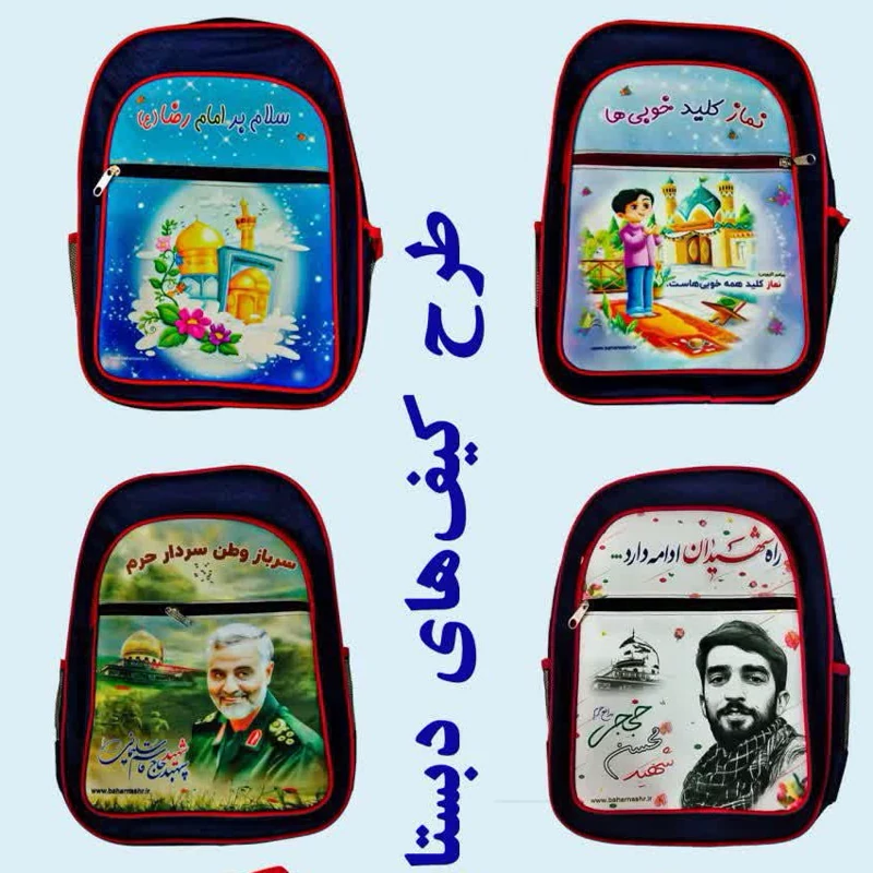 کیف مدرسه با ست جامدادی و دفتر و دفترچه کیف دبستان پسرانه کوله مدرسه طرح مذهبی