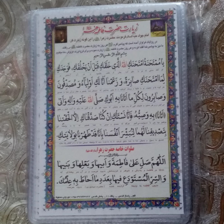 50 عدد دعای کارتی زیارت حضرت زهرا و صلوات بر آن حضرت