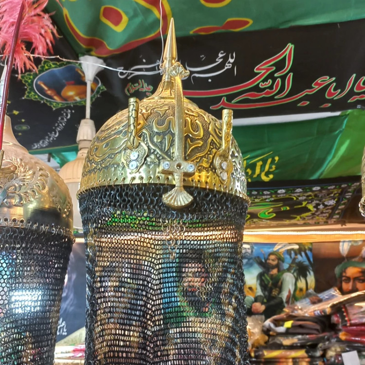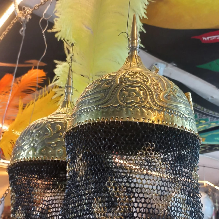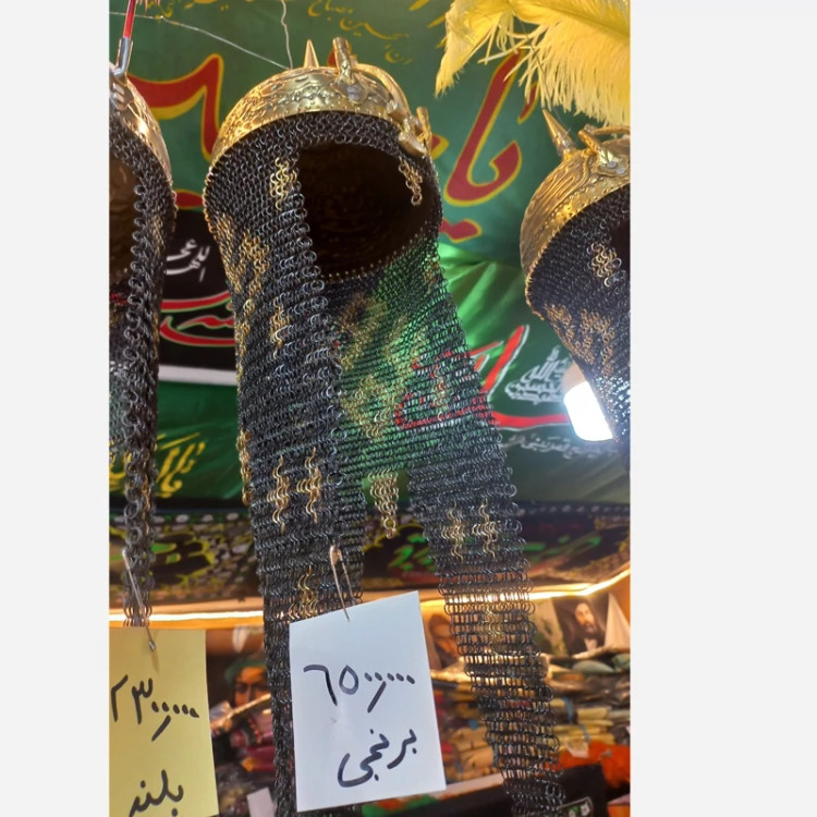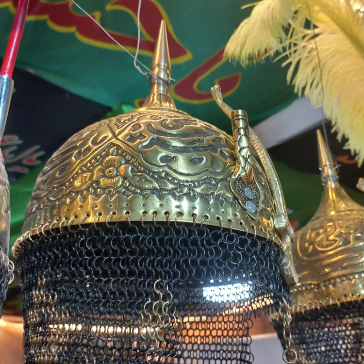 کلاه خود برنجی تعزیه قلمکاری زره بلند حرفه ای کلاخود تعزیه بزرگ