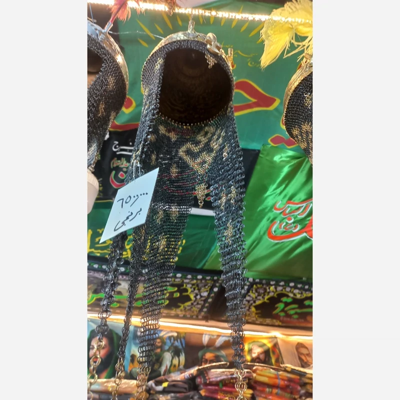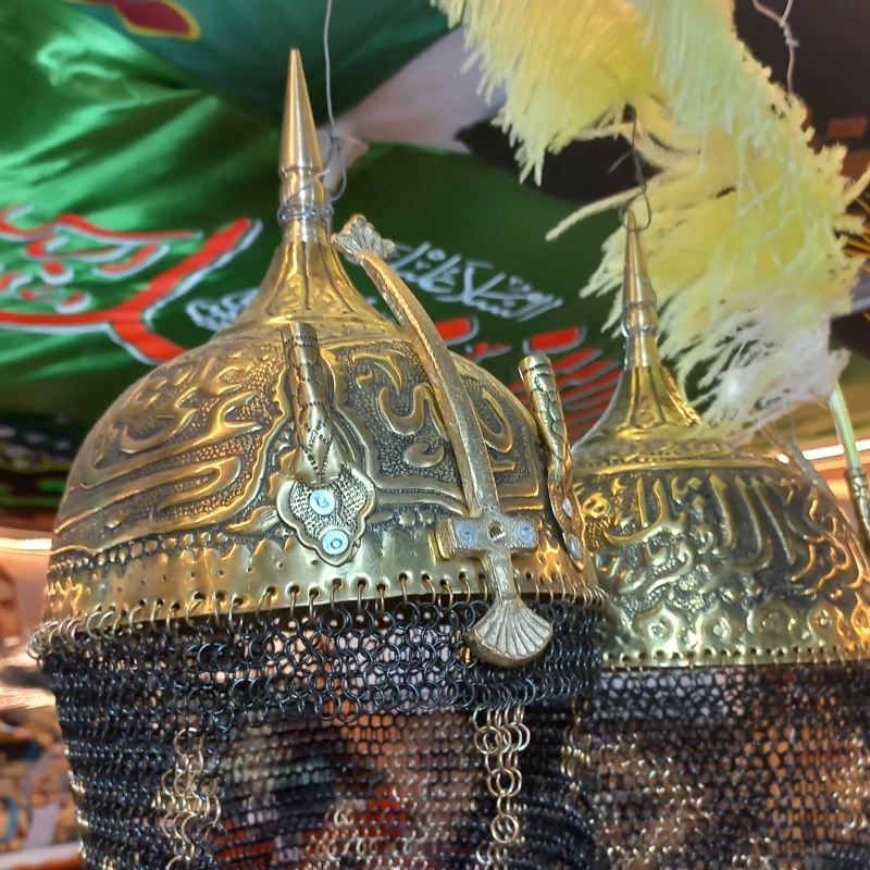 کلاه خود برنجی تعزیه قلمکاری زره بلند حرفه ای کلاخود تعزیه بزرگ