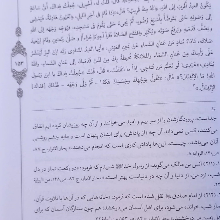♦️سرالاسرار شرح حدیث معراج ✍آیتالله حاج شیخ علی سعادت پرور(پهلوانی تهرانی) 💢معرفی کتاب سرالاسراء تلاشی است در راستای احیای حدیث شریف معراج، که در یک مجموعه منسجم به شرح و تفسیر فرازهایی از حدیث، با روشی بدیع و بهدوراز پیشداوری، نخست آیات و روایات متناسب با فراز موردبحث را ذکر کرده و در پایان مواردی که نیازمند بیان مختصر برای رفع اشکال یا جمع بین احادیث هست، پرداخته است و بدین ترتیب، عمده مشکلاتی را که موجب سردرگمی حقیقت جویان میگردد پاسخ داده است. اساس مطالب کتاب را آیات قرآن و احادیث شریف معصومان(علیهمالسلام) و همچنین دعاها، تشکیل میدهد که در اطراف فقرات حدیث شریف معراج و برای شرح و تفسیر آن، مورداستفاده قرارگرفته است. «سر الاسرار» مجموعه بایدها و نبایدهای زنده ماندن و زندگی کردن به حیات حقیقی و حرکت در مسیر سرمنزل معشوق و معبود است که هیچ سالکی از آن بینیاز نیست و هیچ بینیاز آن، سالک مسیر معبود نیست. این کتاب، مجموعه بایدها و نبایدهایی است که صدور آن از ناحیه حضرت حق و معشوق حقیقی و دریافت آن، توسط رسول حق و ابلاغ آنهم از ناحیه اوست و همین است که وصف بیشائبهترین، خالصترین و دقیقترین دستورالعمل ها. 🔵 4جلدی .جلد سخت.فارسی ❌ #فارسی 🔻🔻🔻