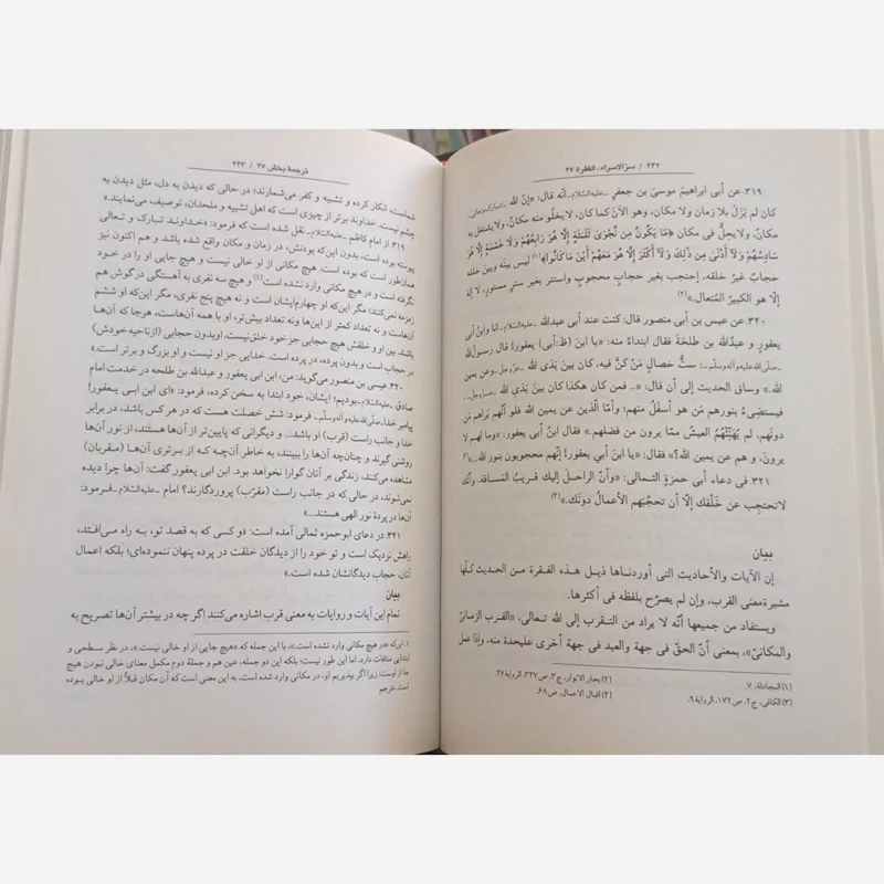 ♦️سرالاسرار شرح حدیث معراج ✍آیتالله حاج شیخ علی سعادت پرور(پهلوانی تهرانی) 💢معرفی کتاب سرالاسراء تلاشی است در راستای احیای حدیث شریف معراج، که در یک مجموعه منسجم به شرح و تفسیر فرازهایی از حدیث، با روشی بدیع و بهدوراز پیشداوری، نخست آیات و روایات متناسب با فراز موردبحث را ذکر کرده و در پایان مواردی که نیازمند بیان مختصر برای رفع اشکال یا جمع بین احادیث هست، پرداخته است و بدین ترتیب، عمده مشکلاتی را که موجب سردرگمی حقیقت جویان میگردد پاسخ داده است. اساس مطالب کتاب را آیات قرآن و احادیث شریف معصومان(علیهمالسلام) و همچنین دعاها، تشکیل میدهد که در اطراف فقرات حدیث شریف معراج و برای شرح و تفسیر آن، مورداستفاده قرارگرفته است. «سر الاسرار» مجموعه بایدها و نبایدهای زنده ماندن و زندگی کردن به حیات حقیقی و حرکت در مسیر سرمنزل معشوق و معبود است که هیچ سالکی از آن بینیاز نیست و هیچ بینیاز آن، سالک مسیر معبود نیست. این کتاب، مجموعه بایدها و نبایدهایی است که صدور آن از ناحیه حضرت حق و معشوق حقیقی و دریافت آن، توسط رسول حق و ابلاغ آنهم از ناحیه اوست و همین است که وصف بیشائبهترین، خالصترین و دقیقترین دستورالعمل ها. 🔵 4جلدی .جلد سخت.فارسی ❌ #فارسی 🔻🔻🔻