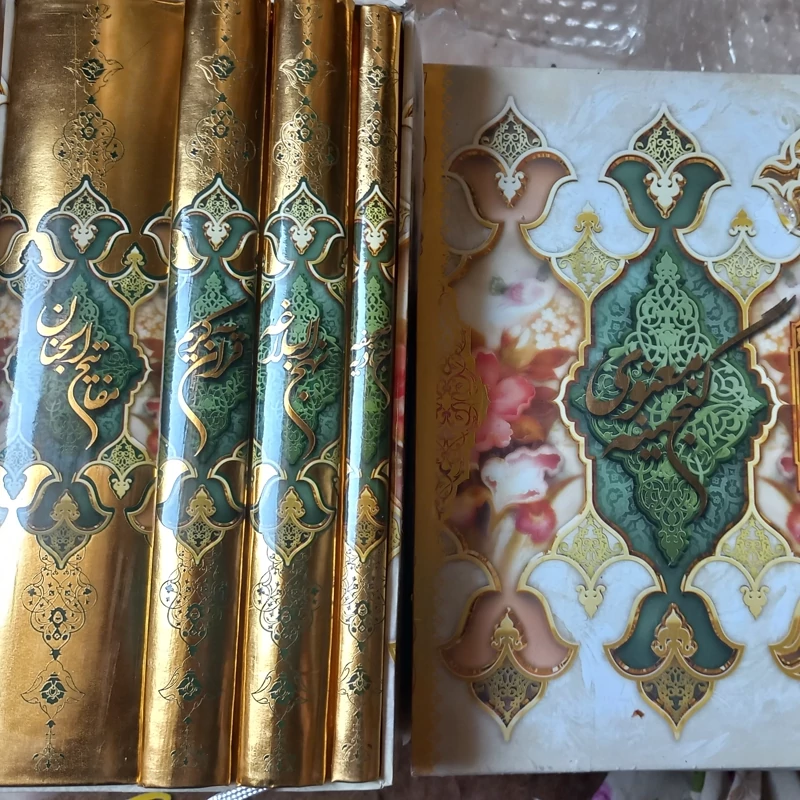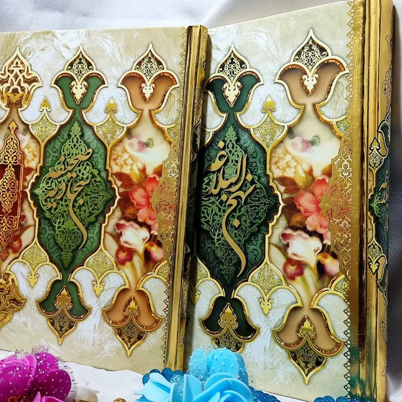 پک کامل قرآن کریم و مفاتیحالجنان و نهج البلاغه امیرالمومنین وصحیفه سجادیه قابدار پک کامل قرآن، مفاتیح، صحیفه و نهج البلاغه 4 جلدی طلایی