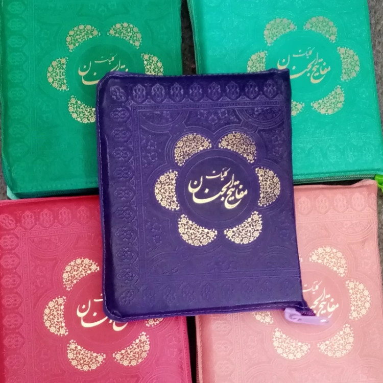 کلیات مفاتیح الجنان کیفی کاغذ نفیس و نازک. حاشیه رنگی. متن رنگی. نوشته های نسبتا درشت. خوش خط.استاد اشرفی