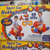 اسباب بازی اسب هوبی دارای چهار چرخ می باشد و کودک می تواند سوار آن شده و مثل یک ماشین بازی با آن بازی کند یا می توان چرخ های آن را جمع کرده و حالت ننو داشته باشد.