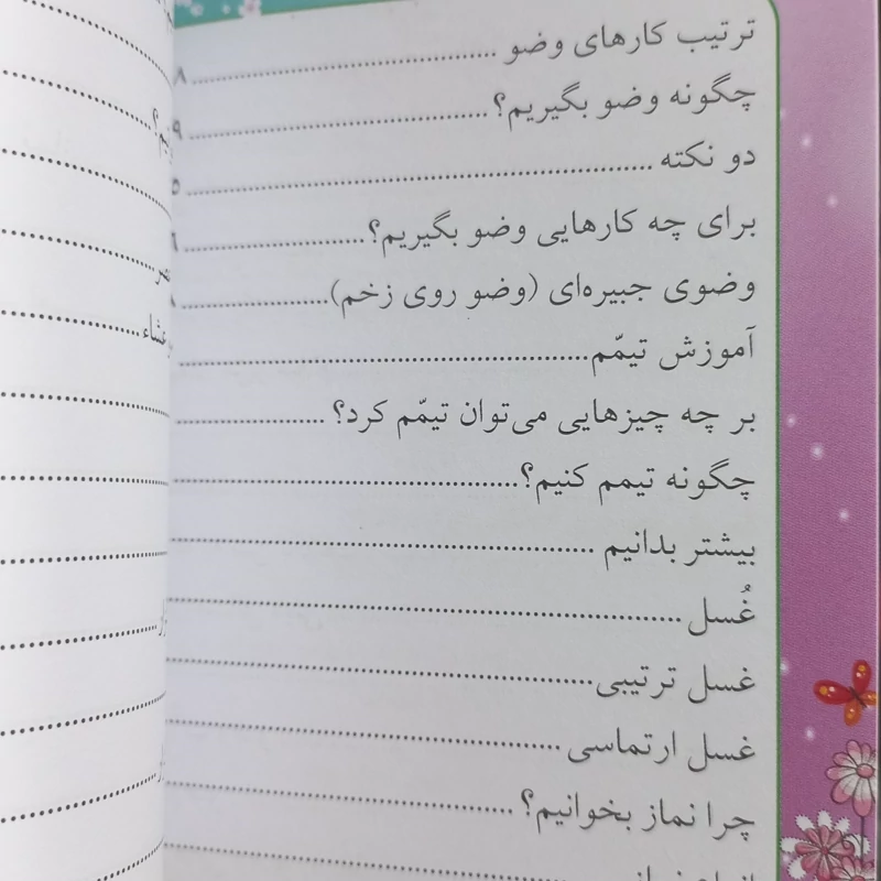 آموزش احکام به همراه تصاویری جذاب و متنی ساده و روان در راستای آگاهی بخشی دختران نوتکریب با شیوهای مناسب و گیرا احکام دینی مثل وضو غسل تیمم نماز را آموزش ببینند و عمل کنند مچنین این کتاب به آنان کمک میکند تا نکات اخلاقی معنوی ظریف هفته در احکام اسلامی را با روشی آسان و جذاب و خوشایند مطابق ذوق پاک دخترانهشان بیاموزند