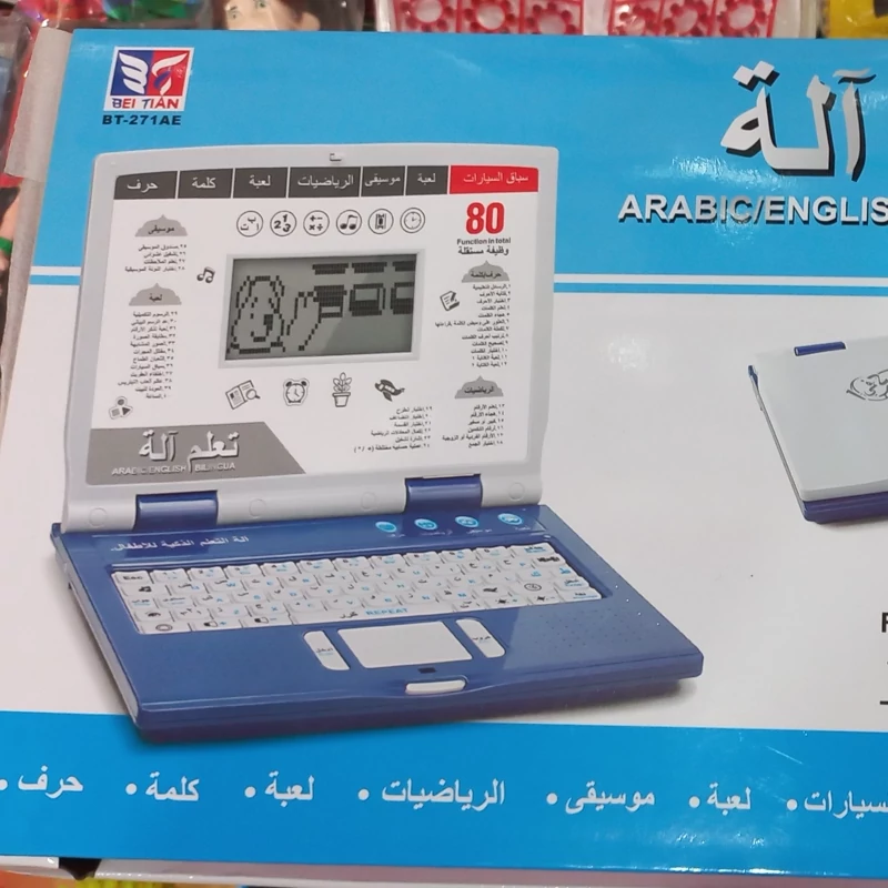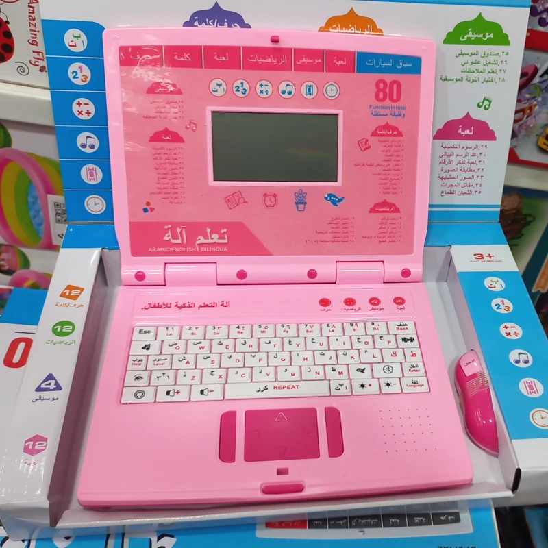 لپ تاپ آموزشی هشتاد کاره یک اسباب بازی علمی کمک آموزشی مناسب برای کودکان می باشد. در این لپ تاپ 80 برنامه ی کاربردی هدفمند طراحی شده است که کودک ضمن یادگیری و بازی با برنامه ها با کلید ها و فضای یک لپ تاپ واقعی نیز آشنا می شود. این لپ تاپ تماما انگلیسی و عربی بوده و اصلا زبان فارسی در آن استفاده نشده است. تصاویر روی صفحه ی نمایش نیز بصورت سیاه - سفید می باشد. صدای لپ تاپ با دکمه vol کم و زیاد شده و نور صفحه نیز توسط کلید LCD قابل تنظیم می باشد. موس از طریق سیم به لپ تاپ متصل شده و روی آن دو کلیدEnter و Esc قرار دارد که می توان از آنها استفاده کرد. برای باز کردن لپ تاپ دو کلید کناری را به جلو بکشید تا لپ تاپ باز شود و نیاز به 3 باتری 1.5v دارد.