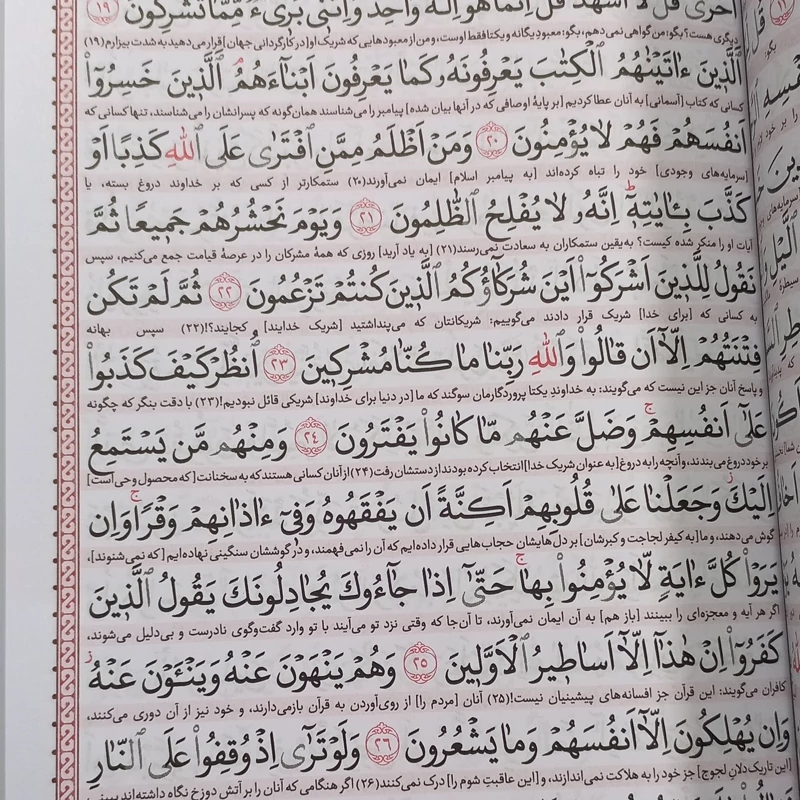قران کریم کامپیوتری روان و گویا حروف ناخوانا و کمرنگ الله ها قرمز هست و شماره صفحات بر اساس صفحات قرآن عثمان طاها تنظیم شده است همراه با فهرست موضوعات